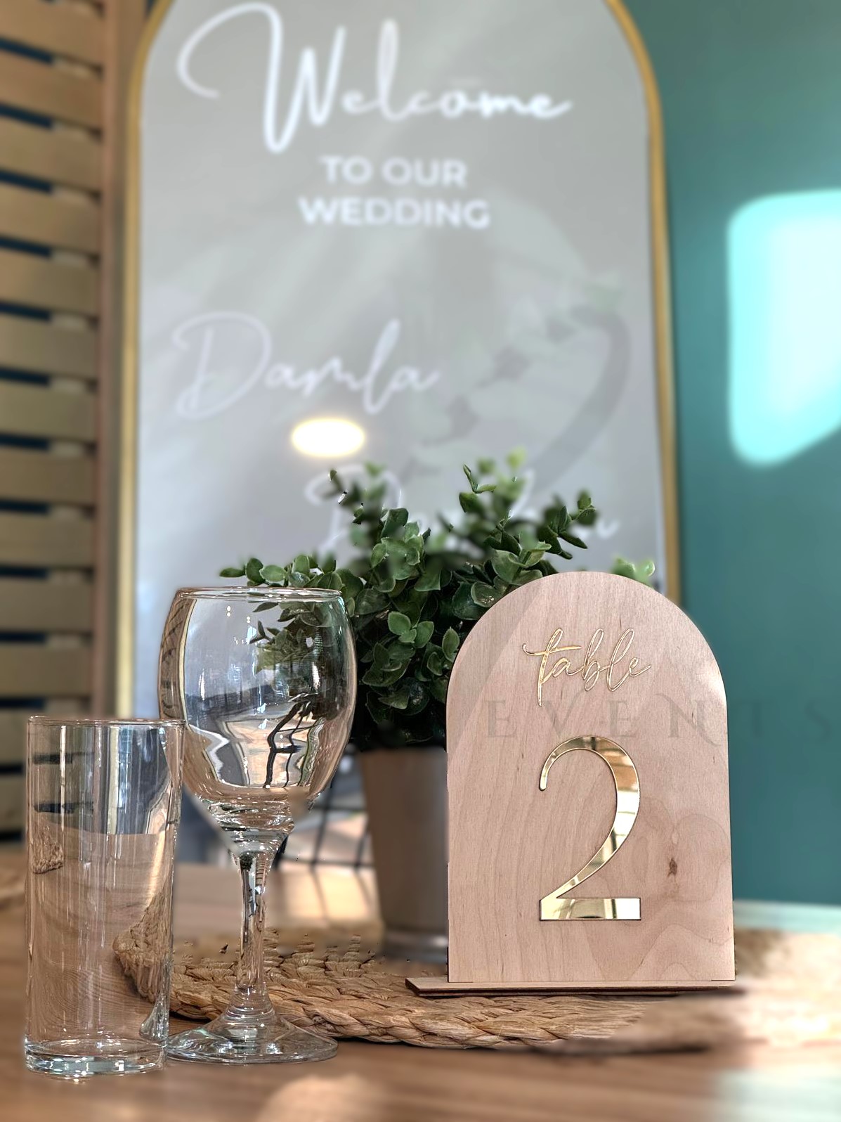 Özel olarak tasarlanmış pleksi malzeme, ürüne dayanıklılık ve uzun ömürlülük katmaktadır. Ayrıca, göz alıcı altın tonu, davet masasında bir ahenk oluşturmak için mükemmel bir şekilde ahşapla birleştirilmiştir.